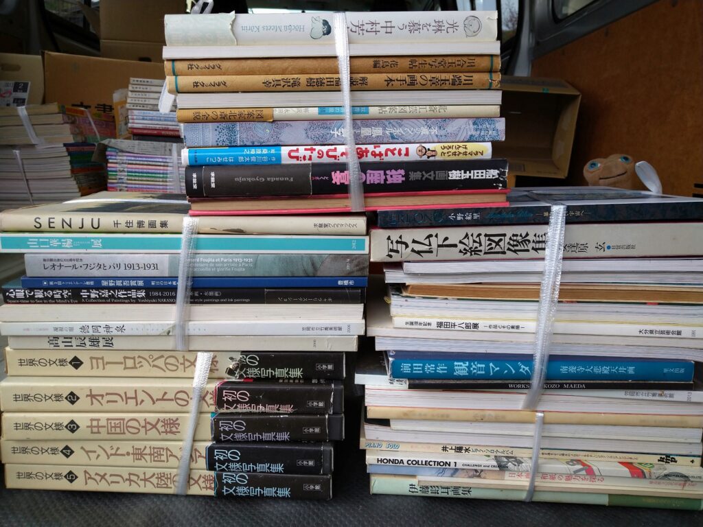 再度、アトリエに戻り、1冊ずつ拝見させていただきました。芸術家さんの蔵書なので、美術書がメイン。画集や作品集、展覧会図録などを買い受けさせていただきました。搬出も当店でさせていただくのですが、車までの距離が遠いという事で、お手伝いを。大切な書籍や画集などをお売りいただいた上、コーヒーを頂き、お手伝いまでしていただき、ありがとうございます。また、機会がございましたら、お声を掛けていただきます様お願い申し上げます。